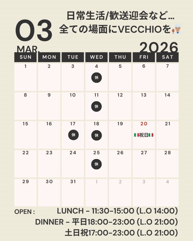 ☆3月20日(金)の祝日はディナータイム17時より営業いたします☆
